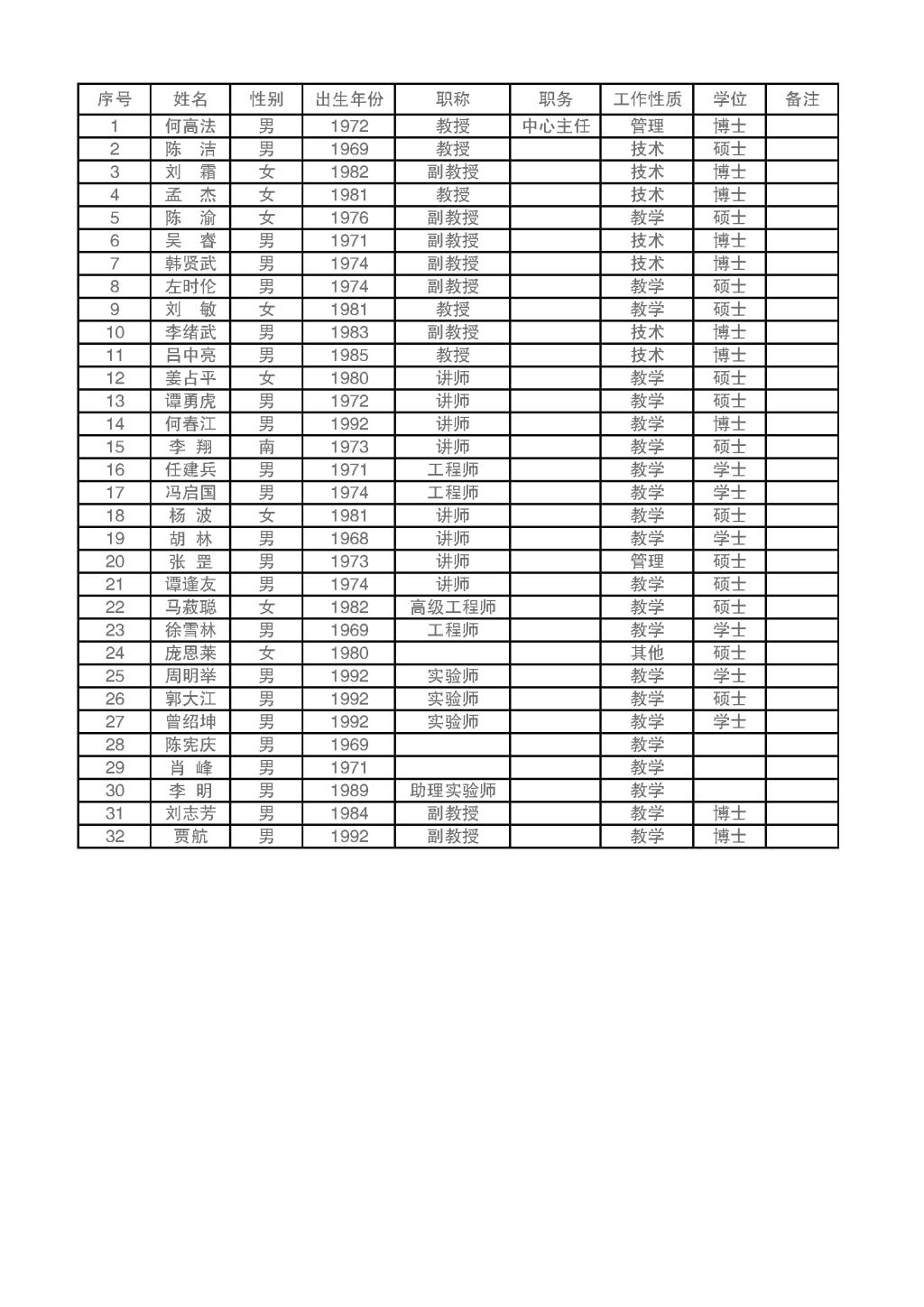 机械工程市级实验教学示范中心(重庆科技大学)专职教师